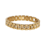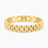 Elevate your everyday look with the Brooke Bracelet, a bold yet timeless piece inspired by classic watch band designs. Crafted from durable stainless steel and finished in a radiant gold tone, this bracelet features sparkling diamond accents for just the right amount of shine.