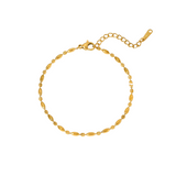 Elevate your everyday look with the Ivy Bracelet — a thin, dainty gold piece designed for effortless elegance. Crafted from durable stainless steel and plated in luxurious 18k gold, it’s water and sweat resistant, made to shine with you all day. The adjustable clasp fits wrists from 6 to 8 inches, making it perfect for layering or wearing solo. Chic, minimal, and timeless — Ivy is your new go-to.