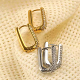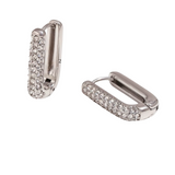 Elevate your everyday look with the Evelyn Hoops—our playful twist on the classic huggie earring. These rectangular diamond hoops bring a sparkling edge while staying comfy and cute, making them your new favorite go-to for effortless style.