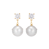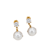 • Design: CZ stud earrings with attached pearl + small CZ accents