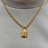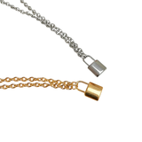 Unlock effortless style with the Lucky Lock Necklace. Crafted from lightweight stainless steel plated in 18k gold, this chic piece is both waterproof and tarnish-resistant—perfect for everyday wear. Measuring 17 inches, it features a sleek gold lock pendant that symbolizes strength, luck, and new beginnings. Whether worn solo or layered, the Lucky Lock adds a modern, stylish touch to any outfit.