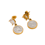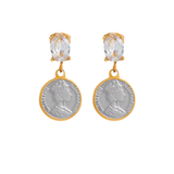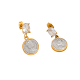 Make a statement with the Cool Girl Studs, one of our most unique earrings to date! Featuring an oval CZ stud with a dangling two-toned coin charm, these earrings effortlessly blend edgy style with everyday elegance.