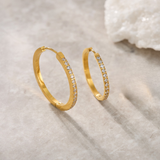 Meet your new everyday essentials — the Goldie Hoops. These thin gold hoops are lined with dazzling diamond CZ stones that catch the light with every move. Lightweight, elegant, and timeless, they’re perfect for any occasion — from casual days to nights out.