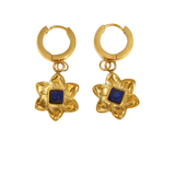 Meet the perfect blend of cute and elegant: the Violet Earrings. These gorgeous huggie-style earrings feature a delicate dangling flower pendant, finished with a rich dark blue CZ stone at the center for a bold, eye-catching sparkle.