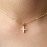 Stay stylish and express your faith with our Dainty Gold Cross Necklace, available in silver and gold options.