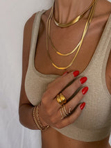 Our BEST SELLER by far. The Herringbone goes with every outfit, and quite literally every other piece of jewelry. This is a must for your stack. You're welcome!